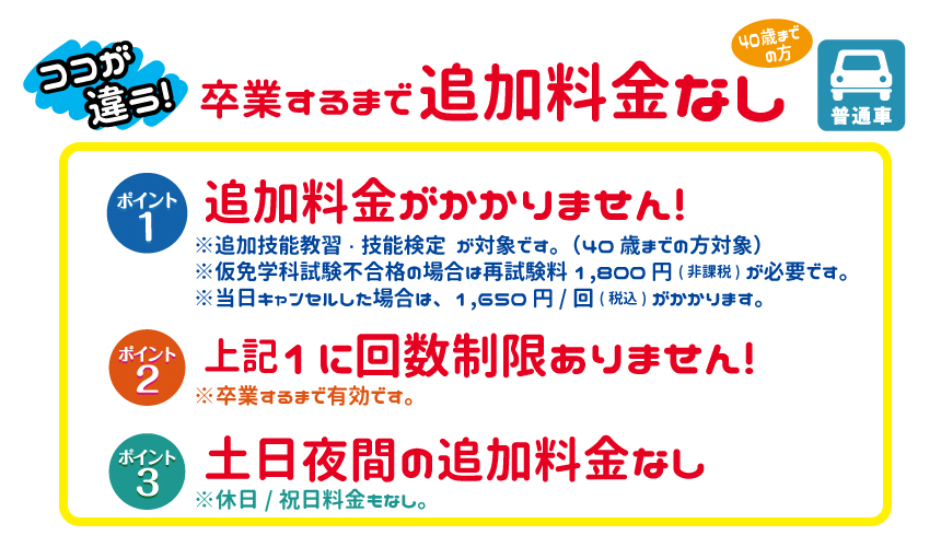 ココが違う! 卒業するまで追加料金なし[普通車限定]