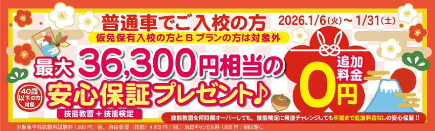 ※はじめて普通車免許を取得される方が対象。仮免再入所の方やAT限定解除の方は対象外です。