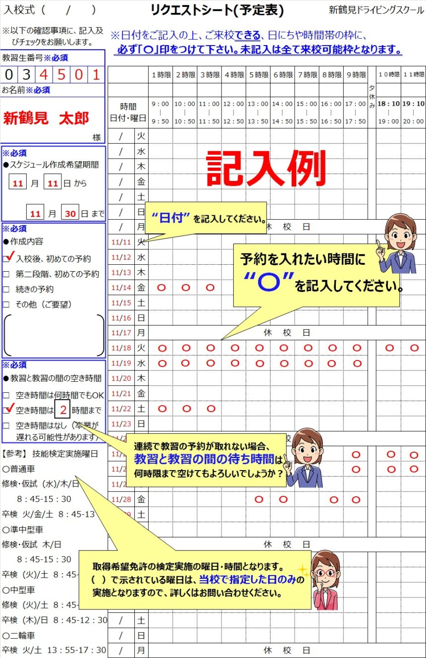 - リクエストシートは必ず手書きでハッキリとご記入ください。スマホ等のペイント機能は禁止です。
